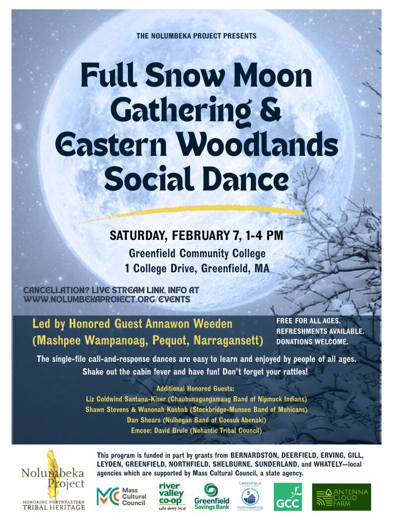 Link to “Sharing Mohican Knowledge and Presence in the Berkshires” Saturday, March 1, 1 – 3 p.m. EST. A conversation on Zoom with Shawn Stevens and Wanonah Kosbab, members of the Stockbridge-Munsee Band of Mohicans. Shawn is cultural & historical educator, spiritualist, and storyteller and his sister, Wanonah is a cultural revitalization advocate focused on environmental stewardship and mental health. Facilitated by David Brule. See flyer below. Donations appreciated. nolumbekaproject.org/donate