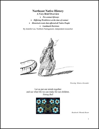 A 17-page brief overview including some pre-contact life ways, differing world views at the time of contact, historic events and landmark decisions about Northeast Native history.