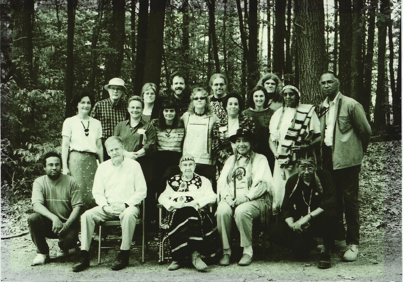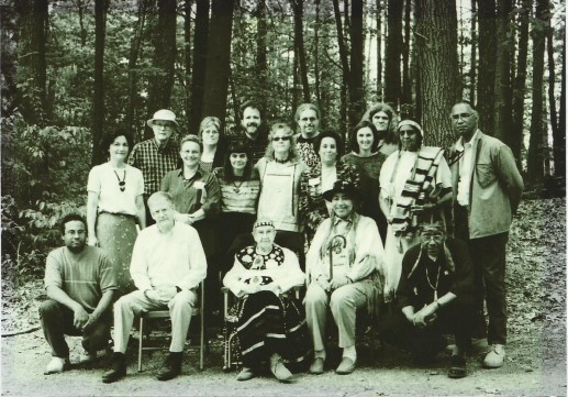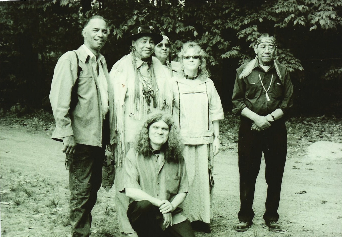 Left-to-right: Doug Harris, Dr. Ella W.T. Sekatau, A.H. “Laughing Water” Wilcox (in the background), Monique Fordham, Lloyd “Running Wolf” Wilcox. Foreground: Howard Clark